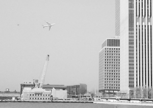 这张4月27日用手机拍摄的照片显示,一架F-16战斗机跟随一架代号为VC-25的喷气机(右)在纽约港上空飞行,这架美国总统专机机组的喷气机由波音747改装而成,总统乘坐时即为“空军一号” 。当天上午,这两架飞机在纽约“自由女神”像附近低空飞行,引起恐慌,许多对“9·11”恐怖袭击记忆犹新的人冲出大楼。美国联邦航管局发言人称这两架飞机是在执行摄影任务。当天下午,负责白宫军事事务的官员卡尔德拉发表声明,对当天低空飞行引起“混乱”表示道歉。