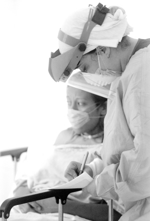 5月2日,医生在墨西哥首都墨西哥城恩里克卡布雷拉医院照顾感染甲型H1N1流感患者。根据墨西哥卫生部2日晚公布的数据,墨全国确诊患甲型H1N1流感人数上升至473人,其中19人已经死亡。