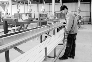 淮阳县委、县政府在市委、市政府的领导下,在市直有关部门的大力支持下,坚定不移地贯彻落实科学发展观,在重点项目建设过程中,注重依靠战略投资盘活存量、扩充总量,仅河南联塑盘活华林项目,就恢复16条管材管件生产线,新上10条PVC生产线。图为河南联塑集团生产车间一角。(记者 王映 摄)