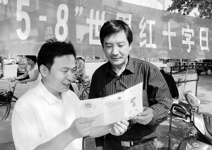 昨日,我市红十字会工作人员走上街头向市民宣讲甲型流感和急救等知识。5月8日是世界红十字日,今年的主题为为:坚持以人为本,大力弘扬“人道、博爱、奉献”精神,求真务实,开拓创新。