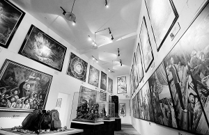 这是汶川大地震博物馆美术作品馆。汶川大地震博物馆将于5月11日正式开馆。该馆是建川博物馆群落的重要组成部分,展览面积3000平方米。博物馆里征集的地震实物中,有抗震救灾部队、医疗队所用过的救灾工具、荣誉锦旗等大批捐赠物品,还有在地震中被埋36天后救出的“猪坚强”、可乐男孩”薛枭喝过的空可乐罐等共计5万多件。博物馆在设计中,对征集来的地震实物以日记的形式,真实地记录地震发生当天至6月12日一个月中,灾区每天发生的事情。30多个展厅,分为地震美术作品馆、地震科普馆等,再现了抗震救灾过程中一幕幕感人至深的场景。 新华社发