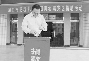 (二)地震让周口人民和灾区人民心连心。汶川地震发生后,灾区震情牵动着周口人民的心,在市委、市政府的正确领导下,全市人民以各种形式支援灾区,“一方有难,八方支援”的感人颂歌在周口大地传唱。市消防支队抗震突击队于第一时间奔赴四川德阳绵竹汉旺镇参加抗震救灾工作;市民政局、市慈善总会和市红十字会积极采取多种形式开展抗震救灾捐赠活动;市卫生部门组织抗震救灾医疗卫生救援队,于5月19日赴川开展卫生防疫、医疗服务工作,我市卫生防疫工作队被评为河南卫生防疫救援总队红旗支队;市建设、规划、交通等部门投入到援建灾区过渡安置房的攻坚战斗中,援建工作受到灾区人民的好评,被誉为“周口经验”。按照省委、省政府的统一部署,我市开展对口支援江油市大堰乡、西屏乡重建工作。市委书记毛超峰在市委常委、市委秘书长李明方和市建委、市财政局、市发改委等部门主要负责同志陪同下,亲赴四川地震灾区江油市西屏乡,考察我市对口援建工作。2009年4月14日,四川省江油市西屏乡党委、乡政府寄至本报的感谢信,感谢周口市委、市政府和周口人民的无私援助。