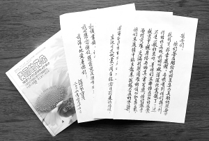 前不久,都江堰市156名中小学生代表全市中小学生给温家宝总理寄来他们签名的画集《美丽的花朵》。4月26日,温家宝总理收到这本画集后,认真翻看着孩子们精心创作的每一幅画作,为灾区孩子们挺起不屈的脊梁、敢于面对灾难的精神和勇气十分感动,随即提笔以饱含深情的语言给都江堰市全市中小学生写了回信,称赞他们“是在这片灾难的土地上绽放出的最美丽的花朵,就是国家和民族的未来和希望。”