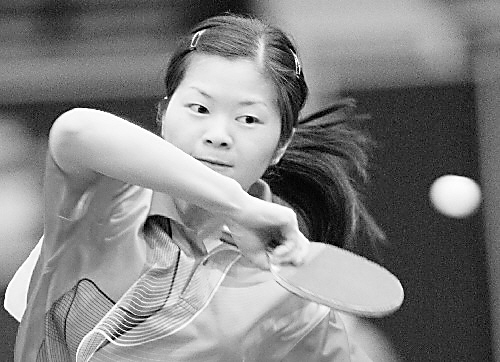 5月17日,上海公安边防总队球员邰英在比赛中。当日,在第三届“边防卫士杯”乒乓球赛女子单打第五轮比赛中,邰英以3比2战胜广州公安边防指挥学校队球员储永红。 新华社记者 杨世尧 摄