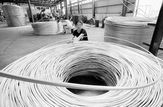 市经济开发区良好的环境和政策,吸引了各方客商在此落户。他们积极帮助企业改革、改组、改造,使部分企业发展成为具有参与国际竞争能力的大型企业集团。图为市经济开发区电缆工业园区生产车间一角。(记者 沈湛 摄)