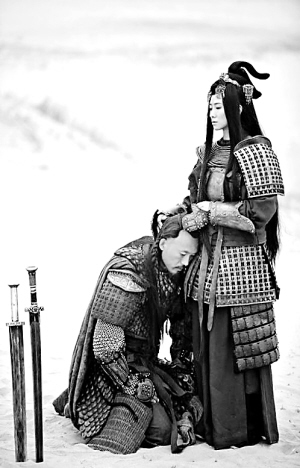 《孙子大传》再爆一组剧照,扮演眉妃的翁虹化身武士,在沙漠上演一场美人英雄诀别大戏,一身盔甲的翁虹站在风中,面庞清瘦,脸上的坚决与忧伤构成了一幅凄美画卷。(新华)