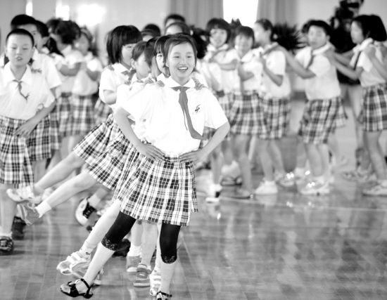 5月20日,杭州靖江镇第三小学的学生在课间跳“兔子舞”。当日,由卫生部、中国记协等单位联合举办的“中国健康知识传播激励计划”首站在杭州萧山区靖江镇第三小学举行,旨在向全国推广均衡饮食、适量运动的健康生活方式。据统计,我国目前有2亿人超重,6000万人肥胖,我国大城市中,每5个孩子就有1人超重或肥胖。 新华社记者 王定昶 摄