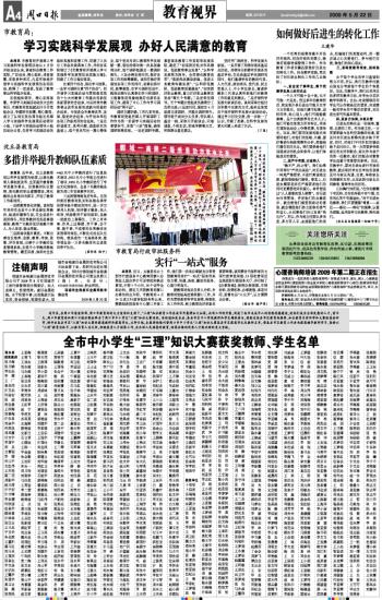 全市中小学生“三理”知识大赛获奖教师、学生名单