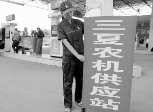 “三夏”机收会战即将开始,为促进小麦颗粒归仓,中石化项城分公司安排3座农机供保站、14座加油站点为农机户开辟绿色通道,全天供油,确保农机就近加油。(记者 李寒 摄)