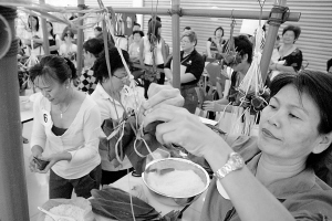 5月23日,在马来西亚首都吉隆坡一家商场里,当地华人参加一场为迎接端午节而举行的包粽子比赛。 新华社发(张纹综 摄)