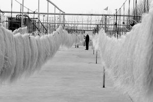 郸城县委、县政府针对当地农产品种植产量高、品种优、销售不畅的实际,在发展涉农工业、实现农产品就地转化增值上寻找新突破,潜心打造农产品深加工产业集群。如今,该县已形成了玉米、红薯等八大产业集群,辐射带动了200多万亩生产基地的发展。图为该县一粉条加工厂的工人正在晾晒粉条。