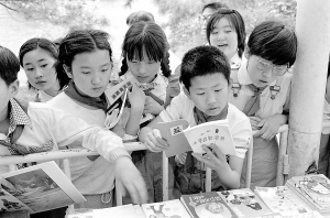 1987年“六一”儿童节前夕,第三届儿童书市在中国儿童少年活动中心开幕。这是小朋友们在书市上挑选自己喜爱的图书。