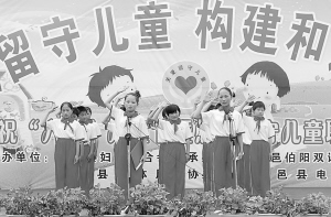 上图:鹿邑县妇联、教体局举行庆“六一”暨慰问留守儿童联欢会,5000多名留守儿童享受了一场视觉盛宴。(王红梅 罗宇 摄)