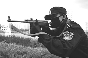 图②6月9日,特警队员严防“恐怖分子”突破包围圈。 新华社发
