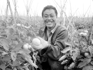 “在家种植特色经济真比外出打工强多了!”昨日,太康县城关镇返乡农民工程维红正在自己承包的西红柿地里查看西红柿长势。去年程维红从广东返乡后,从村民手中承包了50多亩地,种植了西红柿、辣椒、黄瓜等特色经济,实现亩均纯收入5000多元。程维红从土地流转中尝到了甜头。(记者 孙安平 摄)