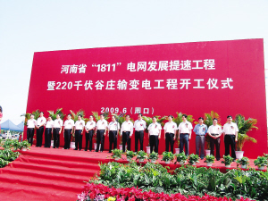本报讯 (记者 刘彦章)6月12日上午,河南省“1811”电网发展提速工程暨220千伏谷庄输变电工程开工仪式在市经济技术开发区隆重举行。市委书记毛超峰下达开工令。市长徐光发表重要讲话。市人大常委会主任李洪民、市政协主席穆仁先及市长助理、市公安局局长姚天民,市政府秘书长游保峰,市政协秘书长李继广等参加奠基仪式。市委常委、副市长范明主持开工仪式。
