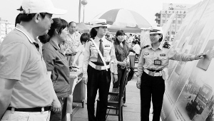 ▲昨日,我市安全生产月宣传咨询日活动启动,我市各单位集中在五一广场开展宣传咨询活动,为广大市民讲解安全常识。图为交警在向市民讲解驾驶和通行时的安全常识。