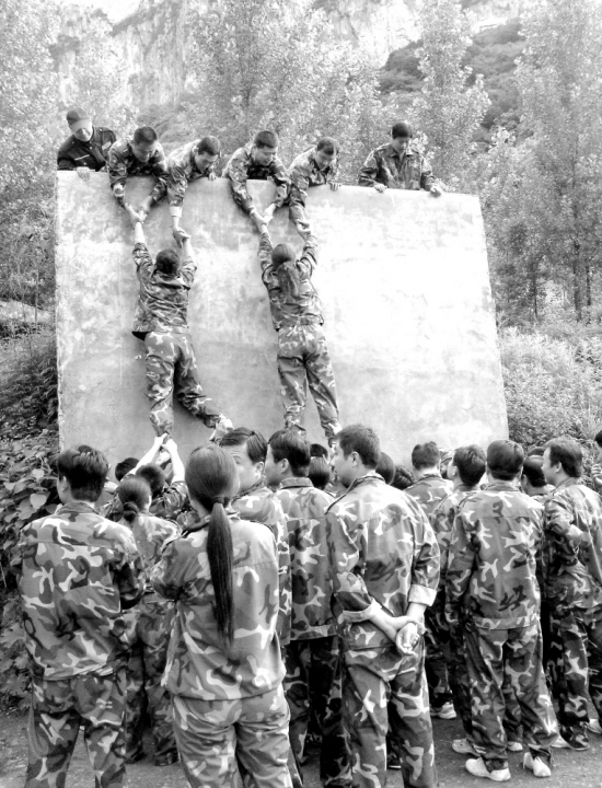 ▲为了提高职工们在执法中的沟通、执行能力,近日,沈丘县质量技术监督局组织全体干部职工在万仙山基地进行拓展训练。图为该局职工训练的场景。(刘瑞华 摄)