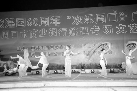6月21日晚由市委宣传部、市文化局等单位主办,市城市信用社承办的“欢乐周口”广场文化活动周口市商业银行筹建专场文艺晚会在“五一”广场举行。优美的舞蹈、欢快的歌声吸引众多市民前往观看。图为晚会现场。(记者 王艳 通讯员 理含冰 摄)