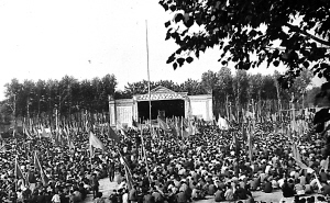 1976年,地区体育场(五一劳动广场的前身)。那时的地区体育场是举办各种大型活动和大型会议的主要地点。(市档案馆供稿)