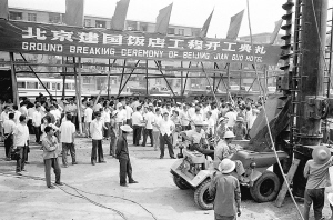 1980年6月27日,中美合资建造的新中国第一家中外合资饭店——建国饭店在北京建国门开工建设,1982年3月29日正式营业。这是北京建国饭店工程开工典礼。 新华社发