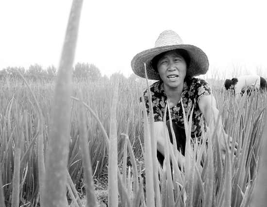 为实现农业规模化、集约化、高效化发展,今年我市出台多种土地流转优惠激励措施,鼓励返乡农民工和种植大户通过承包、转租等途径种植各类特色经济作物,使土地“活”起来,让农民在土地流转中富起来。图为菜农在菜地里管理大葱。 记者 孙安平 摄