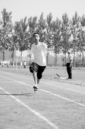 在田径赛场,来自扶沟县运动员马腾飞,参加了100米跑的比赛。当看到站在起跑线上的他时,观众立刻报以热烈的掌声。随着发令枪响,马腾飞挥舞着两条空荡荡的衣袖向终点跑去。