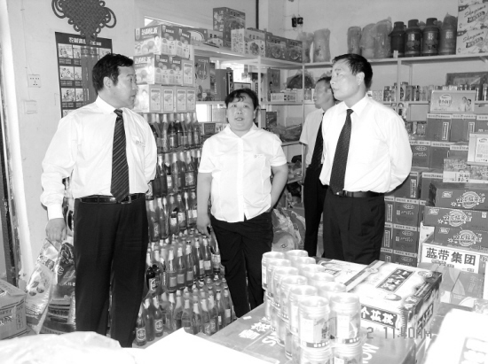农行周口分行依托当地的“万村千乡”工程,积极向农户发放惠农卡和农户小额贷款,帮助200多农户走上了致富路。图为该行领导带领客户经理到该行支持的农户商店调研经营情况。(黄伟 夏敏 摄)