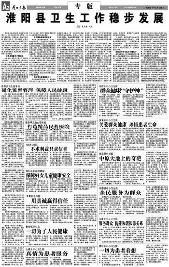 淮阳和平医院是由周口市卫生局批准成立的一家非赢利性综合性医院。几年来,全院医务人员秉承“以人为本,患者至上,疗效第一,诚信服务”的办院宗旨,努力提高医疗质量,降低医疗服务价格,积极开展便民服务,2009年被批准为新农合定点医院。