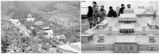 2003年7月3日,在巴黎召开的联合国教科文组织第27届世界遗产大会一致决定,将中国北京市的十三陵和江苏省南京市的明孝陵作为明清皇家陵寝的一部分收入《世界遗产名录》中。左图是位于北京昌平区的明十三陵。右图是南京明孝陵博物馆内的明孝陵地面建筑模型。新华社发