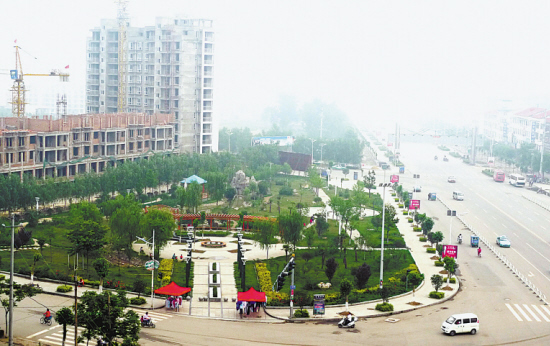 为改善城区居民生活环境,近年来,沈丘县通过招商等多种形式,进行城区规划建设。目前,沈丘县城已新建成街心花园和沙河两岸公园、新城广场等市民休闲娱乐场所。图为该县东关街心花园。(记者 孙安平 摄)