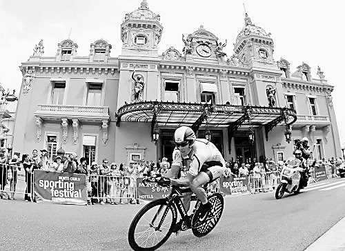 7月4日,“七冠王”、美国车手阿姆斯特朗在比赛中骑行。当日,2009年环法自行车赛在摩纳哥拉开战幕,阿姆斯特朗在第一赛段的个人计时赛中以20分12秒的成绩排在车手榜的第10位。 新华社/路透