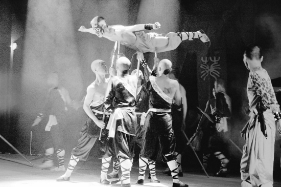 由周口三通武术学校自编自演的大型功夫剧《葵》,首次将武术、杂技和情景剧结合,是一种新的舞台艺术形式,在我市首次演出后获得业内人士的一致好评。(记者 陈卫东 摄)