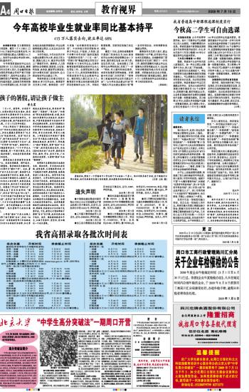 今年高校毕业生就业率同比基本持平