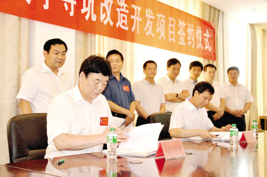 7月15日,太康县政府与广东金仓投资有限公司签约,标志着太康县天宁寺坑改造开发项目正式启动。据了解,由于多年疏于管理,天宁寺坑严重影响着周边居民的日常生活。为改善群众居住环境,太康县委、县政府把天宁寺坑改造作为该县“十大工程”之一,积极与外商沟通、协商,并最终达成协议。该项目建成后将成为集休闲、娱乐、购物于一体的商业文化街。图为签约仪