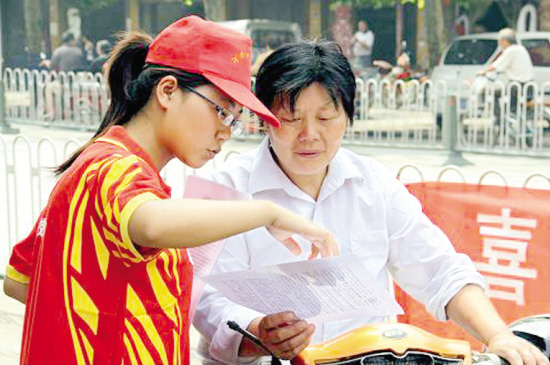 暑假期间放假返家的大学生们积极参与社会实践活动。图为一大学生向行人宣传预防甲型H1N1流感常识。 程全 摄