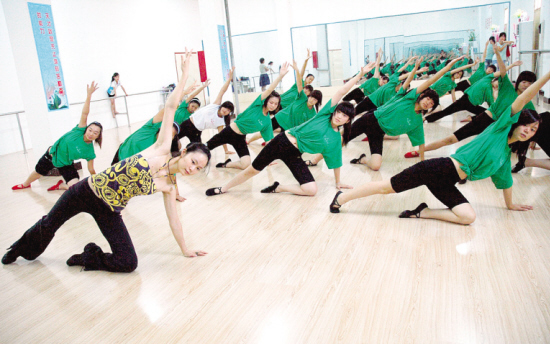 暑假期间,许多青少年学员每天到周口市艺海文化艺术中心训练,以此提高艺术表现能力,丰富暑假生活。图为一些热爱模特空乘专业的青少年正在进行形体训练。 (记者 王映 摄)