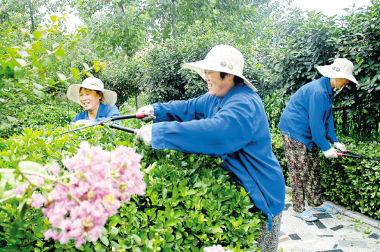 昨日,园林工人冒着酷暑修剪树木。近期我市雨水充沛,市区内绿化带草木生长旺盛,园林工人及时进行修剪。(记者 孙安平 摄)