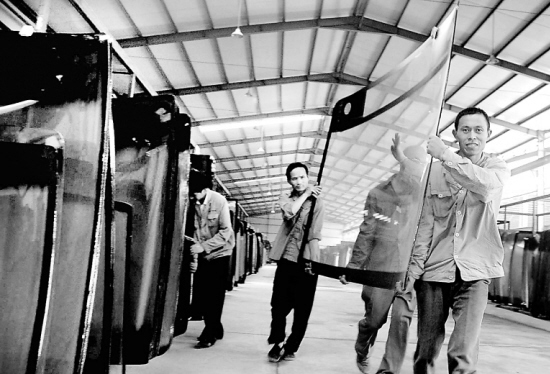 鹿邑县健全机制,创优环境,强力推进招商引资和项目建设。该县亚华安全玻璃有限公司年产100万套轿车玻璃生产项目是15项重点工业项目之一。 (陈卫东 摄)