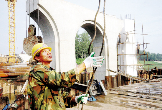在市重点工程建筑工地上,无数来自全国各地的建设者云集周口,他们以饱满的热情工作在本职岗位上。来自南阳的温师傅告诉记者,同为河南人,能为周口重点工程建设出点力,他感到很自豪。(记者 沈湛 摄)