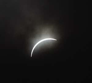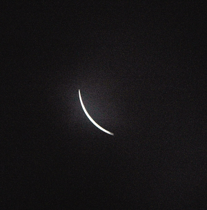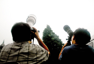 日全食受到了社会各界普遍关注,我市居民纷纷外出寻找最佳观测地点。他们有的前往上海一带,有的赶到重庆成都,有的赶到我省最南部的鸡公山,观测日全食过程。昨天,记者在鸡公山观察到,日全食初亏时间约在8时15分,食既约在9时25分,食甚约在9时26分,生光约在9时28分,复圆约在10时45分。在食甚期间,鸡公山一带笼罩在黑暗中约3分钟。(记者 沈湛 孙安平 摄)
