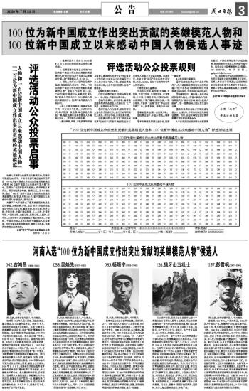 河南入选“100位为新中国成立作出突出贡献的英雄模范人物”侯选人