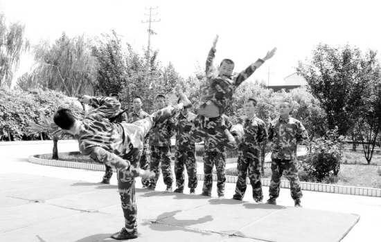 7月24日,武警郸城县中队冒着高温酷暑,按新大纲标准科学培训,有力地提高了部队处理突发事件的能力。(毛凯 摄)