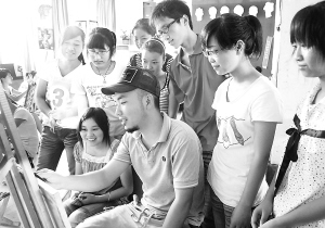 近日,来自山东枣庄的浙江美院学生马晓东在鹿邑县一家画室辅导留守儿童绘画技巧。进入暑假后,不少大学生都参加了各种社会实践活动,一方面利用自己的专长服务社会,一方面也增加了自己的社会经验。蒋保庆 摄