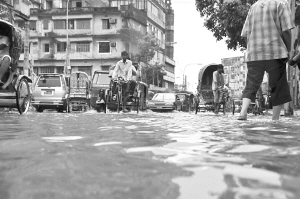 孟加拉国遭遇强降雨 7月28日,在孟加拉国首都达卡,人们在街道上涉水前行。连夜强降雨导致达卡城区洪水泛滥,据当地气象机构记录,达卡28日凌晨至早上7时的降水量达333毫米。 新华社发