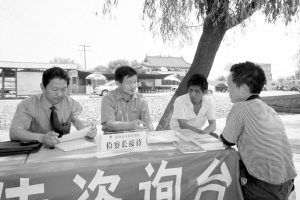 淮阳县检察院副检察长朱德润、控申科长刘德华在接受群众咨询。