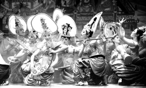 《丝路花雨》又进京 7月29日晚,作为庆祝新中国成立60周年献礼演出的剧目之一,新版经典舞剧《丝路花雨》30周年纪念演出在北京国家大剧院戏剧场上演。此为该剧第1600场的公演。获多项殊荣的《丝路花雨》取材于敦煌莫高窟壁画艺术,由甘肃省歌舞剧院创作于1979年。 新华社记者 张燕辉 摄