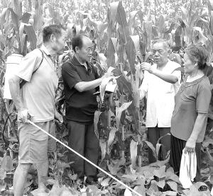 鹿邑县今年引进种植玉米杂交良种70万亩。为观察这些良种的丰产性能表现,县政府组织百余名种子专家和技术人员,深入田间,跟踪调查记载,为秋后评选出高产、抗逆、抗灾玉米新品种奠定基础。图为科技人员在调查“登海超7”玉米新品种丰产性能特点。(胡海云 胡洪涛 摄)