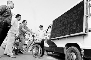 大屏幕巡逻车进社区 8月4日,北京丰台区樊家村居民在观看巡逻车大屏幕播放的防诈骗案例。安装有多媒体LED显示屏的警用巡逻车近期在北京丰台区“上岗”。这种巡逻车可进入社区、学校,通过大屏幕向市民循环播放安全防范知识。新华社发