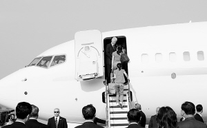 8月5日,被释放的两名美国女记者搭乘美国前总统克林顿的专机离开朝鲜首都平壤。 新华社记者 张滨阳 摄
